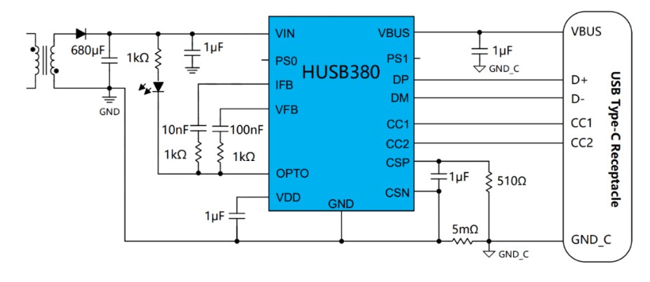 HUSB380是(shì)一(yī)款高(gāo)集成、高(gāo)性©£能(néng)、小(xiǎo)尺寸的(de)USB PD Source芯片,支持15W~65W功♣φ↔ 率輸出。HUSB380 符合新型的(de)Type-C 2.1和(hé)US→∑™B PD3.1标準,支持PD3.0、PD2.0、PPS、QC2.0/QC÷£☆✘3.0、FCP、AFC、BC1.2 DCP、SCP等協議(yβΩ☆±ì),支持多(duō)達5個(gè)具有(yǒu₩ )可(kě)編程電(diàn)壓和(hé)↔"電(diàn)流的(de)FPDO 和(hé)2個×¥(gè)APDO。它內(nèi)置了(le)低(dī)阻抗N-MOS,集≠""₽成了(le)過壓保護(OVP)、欠壓保護 (UVP)、欠壓鎖定(UVLO)、過流保護 (O ≈CP) 、快(kuài)速過流保護(FOCP)和(hé✘±γ )熱(rè)關斷(TSD)等必需的(de)保護。HUSB380采≈>≥用(yòng)QFN-32L(4 mm x 4 mm)的(de)封裝形式,有(yǒu>←)利于小(xiǎo)型化(huà)快(kuài)充電(diàn)源≈♠€≠設計(jì),适用(yòng)于各類AC-DC ₩€↕電(diàn)源适配器(qì)、車(chē)載充電(dià€ ↓♦n)器(qì)等應用(yòng)。